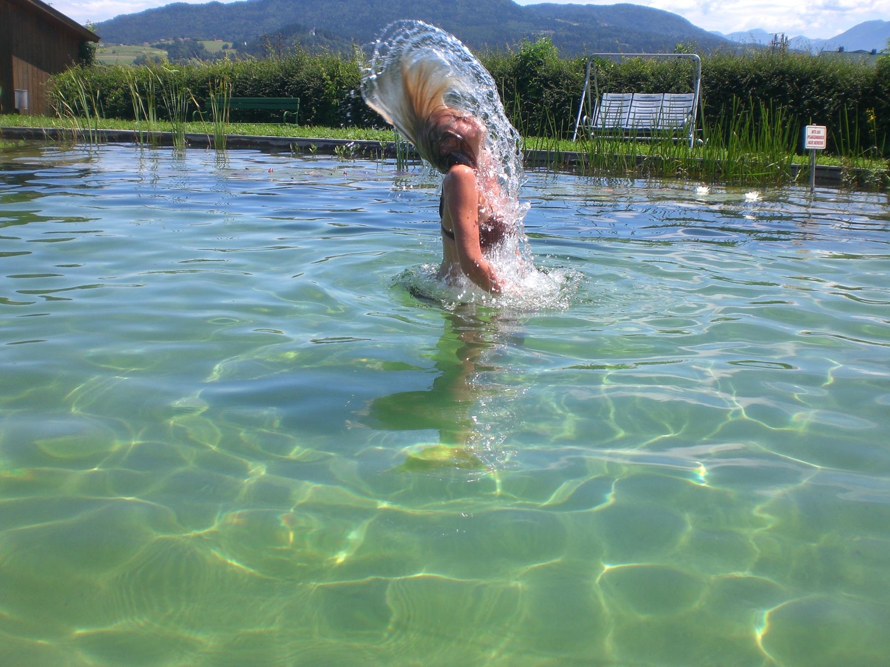 Entspannen auf der großen Liegewiese und plantschen im Naturbadeteich - perfekt zum Energie und Kraft tanken.